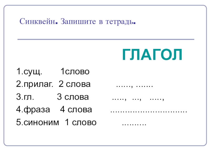 Синквейн. Запишите в тетрадь.