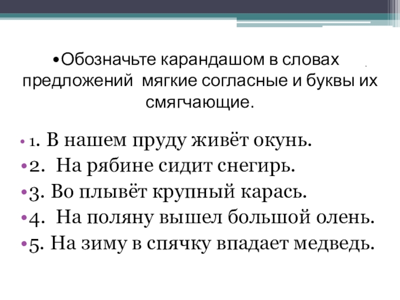 Обозначьте карандашом в словах предложений мягкие согласные и буквы их смягчающие.