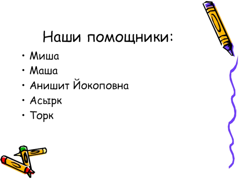 Наши помощники:МишаМашаАнишит ЙокоповнаАсыркТорк