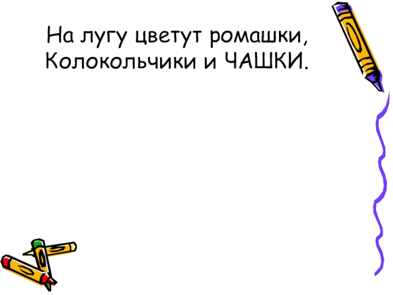 Слайд 4На лугу цветут ромашки, Колокольчики и ЧАШКИ.