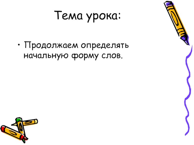 Тема урока: Продолжаем определять начальную форму слов.