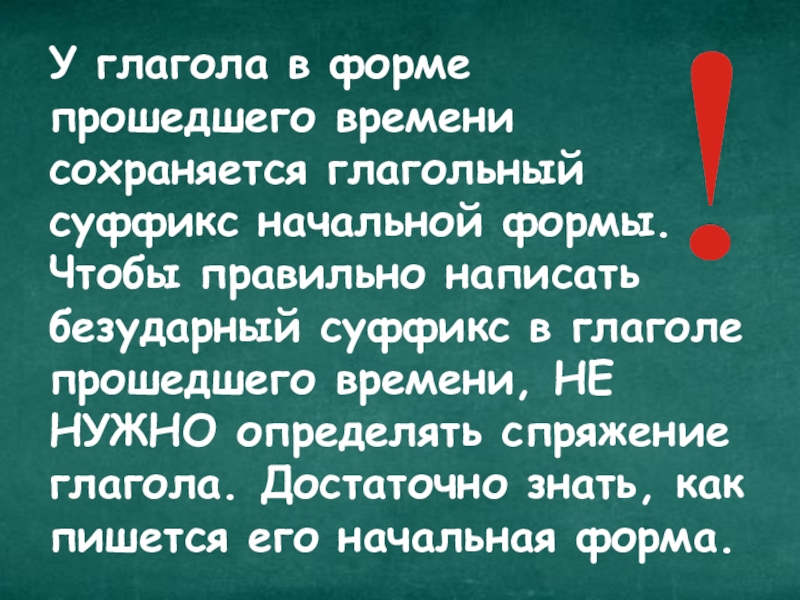 Слайд 7У глагола в форме прошедшего времени сохраняется глагольный суффикс начальной формы. Чтобы
