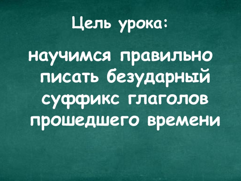 Цель урока:научимся правильно писать безударный суффикс глаголов прошедшего времени