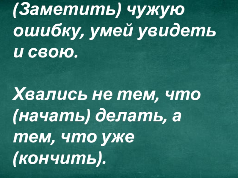 Слайд 8(Заметить) чужую ошибку, умей увидеть и свою. Хвались не тем, что (начать)