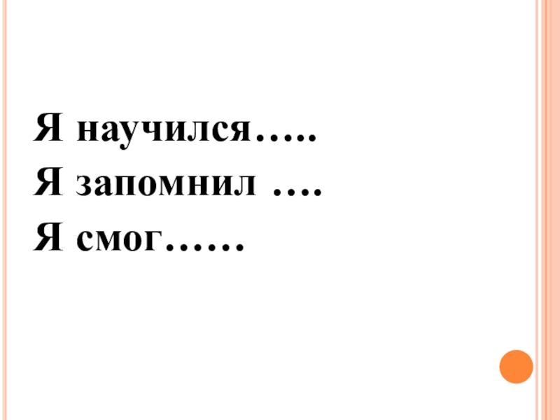 Я научился…..Я запомнил ….Я смог……