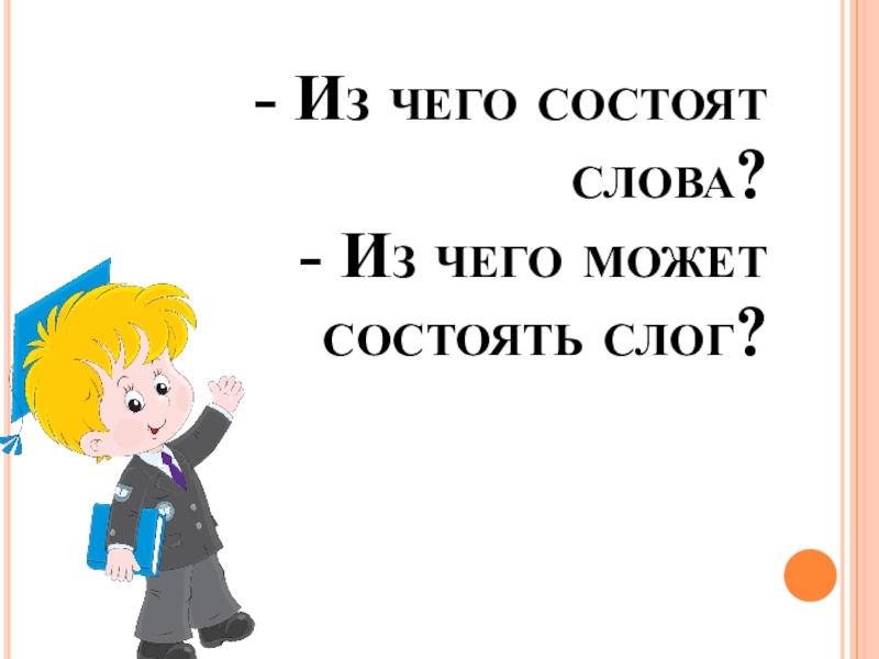 - Из чего состоят слова?  - Из чего может состоять слог?