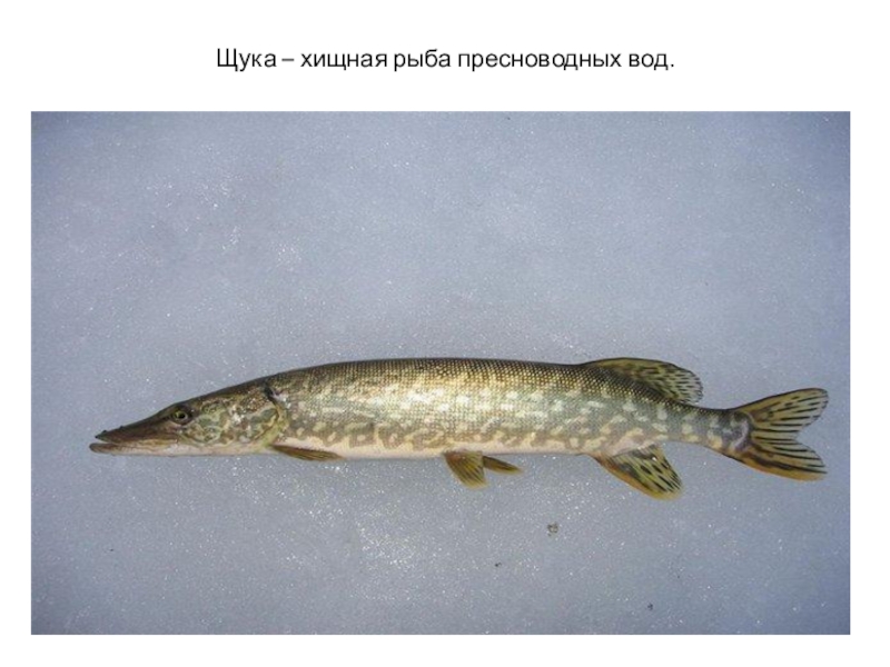 Слайд 3Щука – хищная рыба пресноводных вод.