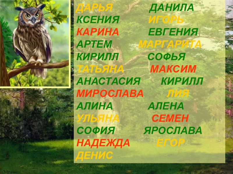 ИГОРЬ КАРИНА ЕВГЕНИЯ АРТЕМ МАРГАРИТА КИРИЛЛ СОФЬЯ ТАТЬЯНА МАКСИМ АНАСТАСИЯ КИРИЛЛ МИРОСЛАВА ЛИЯ АЛИНА АЛЕНА УЛЬЯНА СЕМЕН СОФИЯ ЯРОСЛАВА НАДЕЖДА ЕГОР ДЕНИС