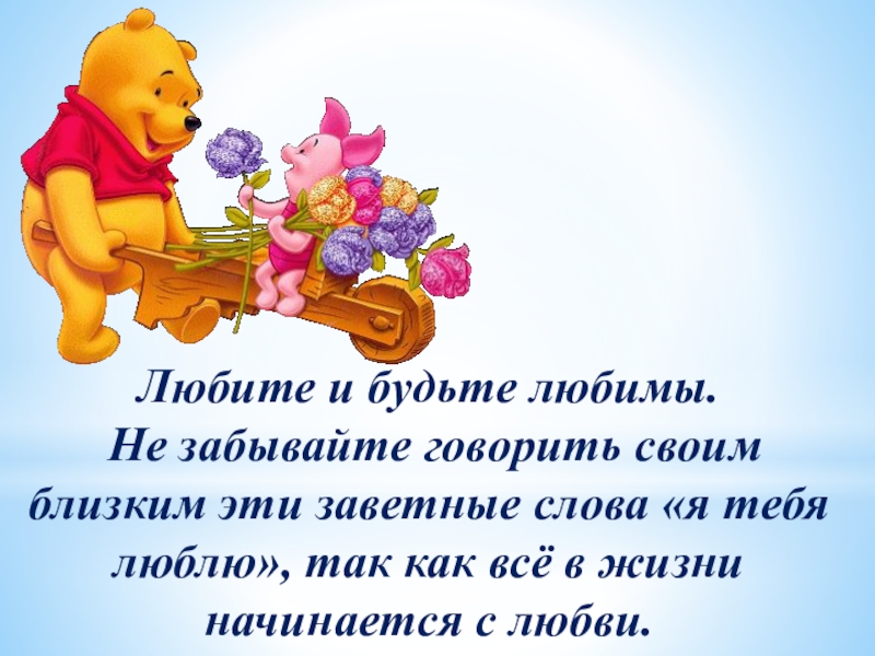 Любите и будьте любимы. Не забывайте говорить своим близким эти заветные слова «я тебя люблю», так как