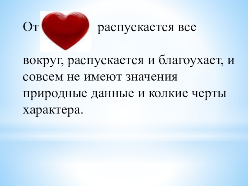 От любви  распускается все вокруг, распускается и благоухает, и совсем не имеют значения природные данные и
