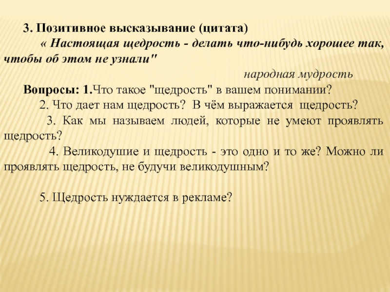 Вопросы: 1.Что такое "щедрость" в вашем понимании?