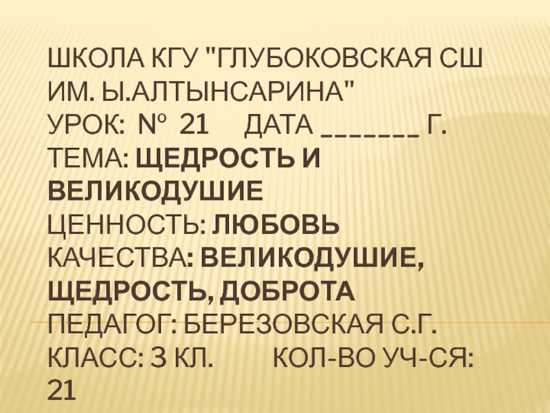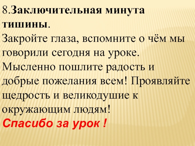 уроке. Мысленно пошлите радость и добрые пожелания всем! Проявляйте щедрость и великодушие к окружающим людям!