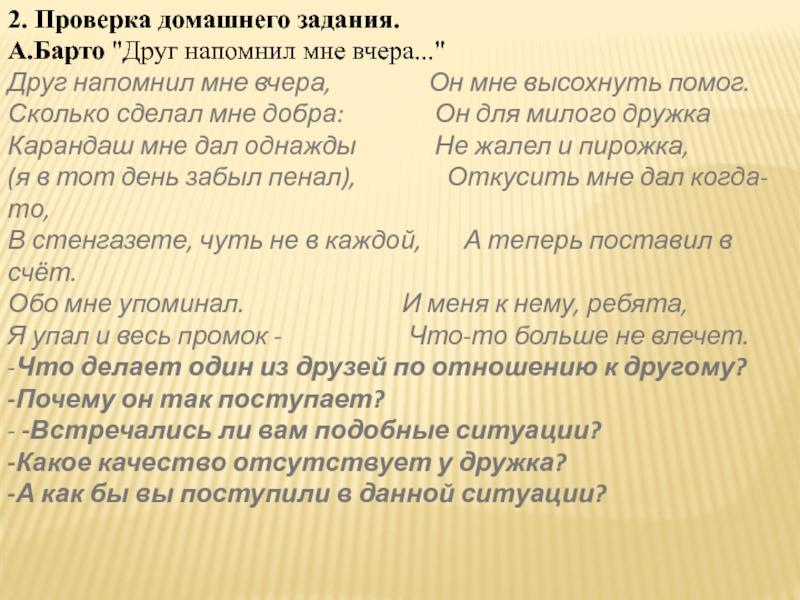 А.Барто "Друг напомнил мне вчера..."