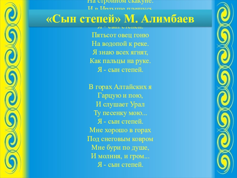«Сын степей» М. Алимбаев