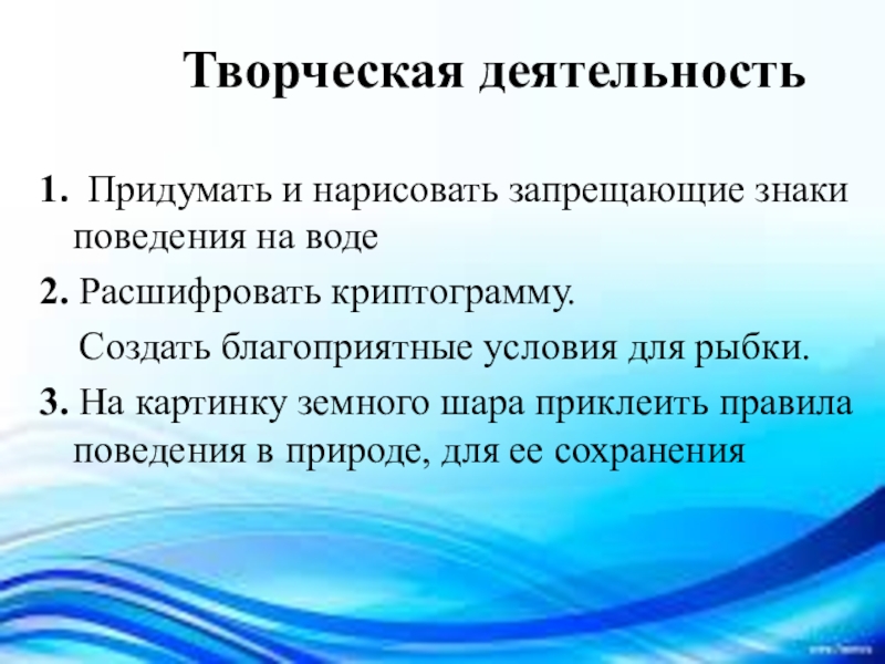 Творческая деятельность1. Придумать и нарисовать запрещающие знаки поведения на