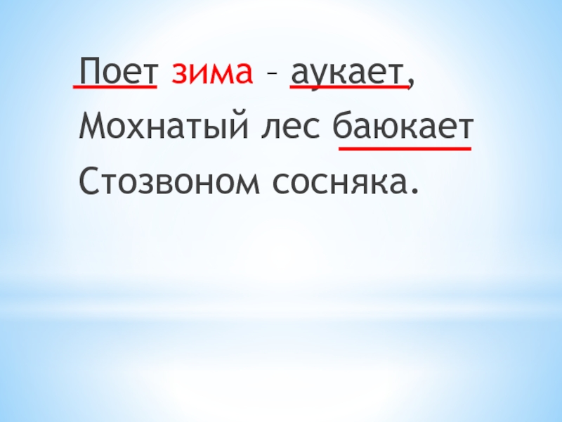 Поет зима – аукает,Мохнатый лес баюкаетСтозвоном сосняка.