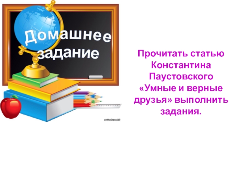 Слайд 11Прочитать статью Константина Паустовского «Умные и верные друзья» выполнить задания.