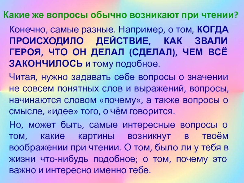 Слайд 5Какие же вопросы обычно возникают при чтении?