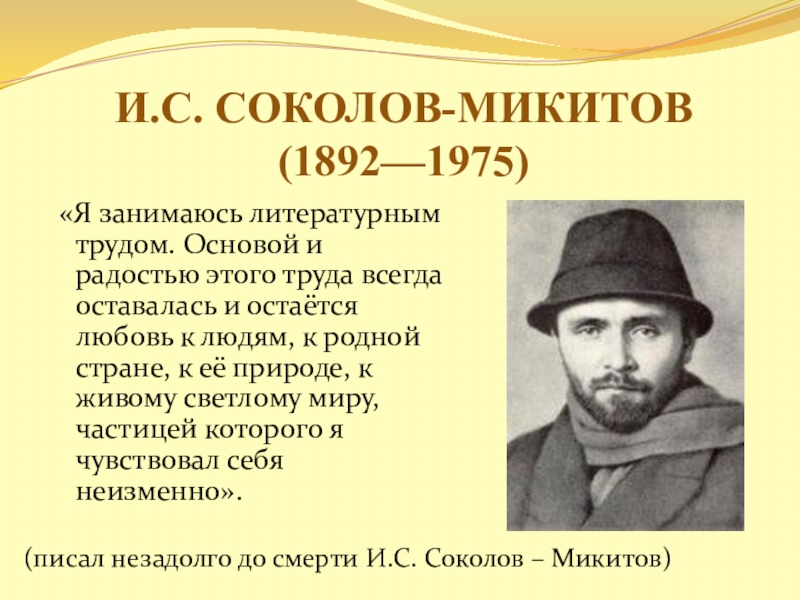 (писал незадолго до смерти И.С. Соколов – Микитов)