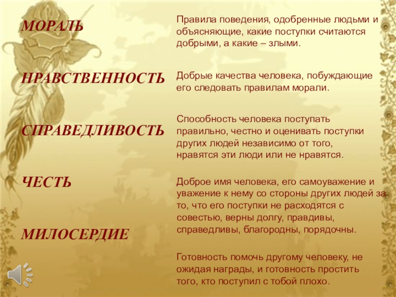 Добрые качества человека, побуждающие его следовать правилам морали.