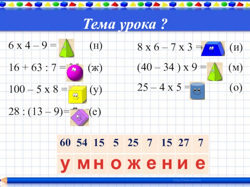 8 х 6 – 7 х 3 = 27 (и)