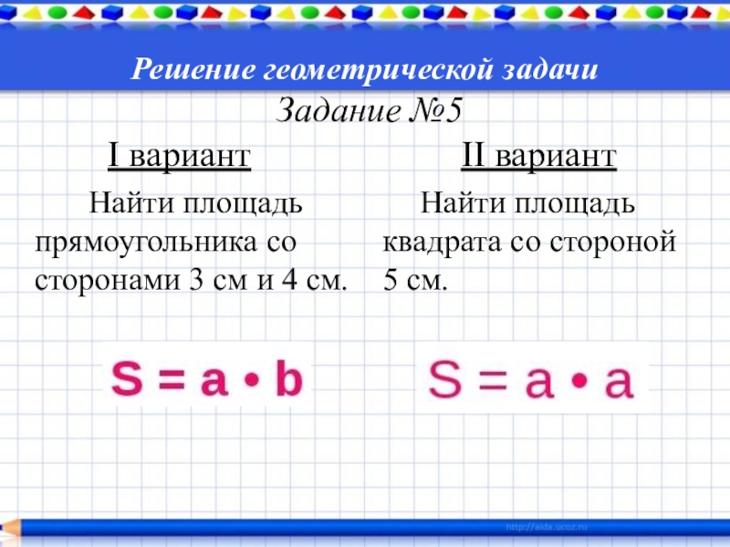 Найти площадь квадрата со стороной 5 см.