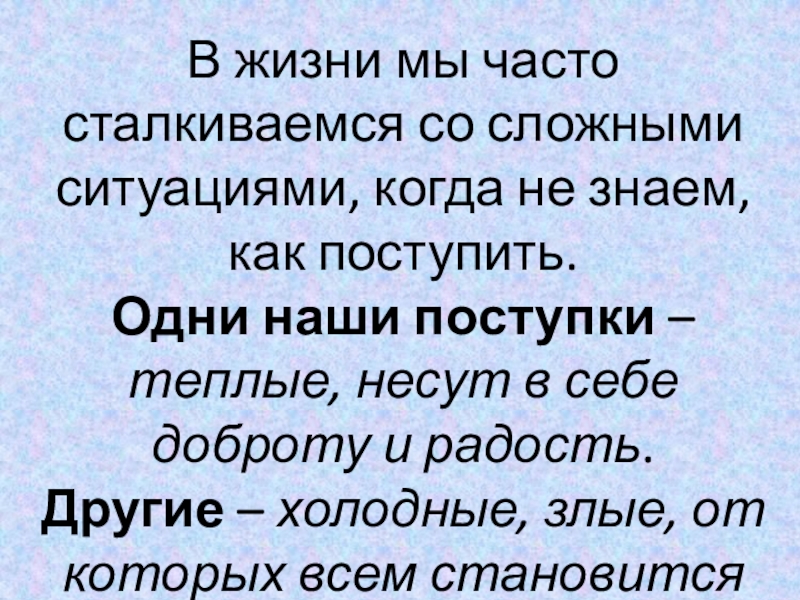 Одни наши поступки – теплые, несут в себе доброту и радость.