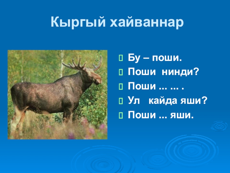 Кыргый хайваннарБу – поши.Поши нинди?Поши ... ... .Ул  кайда яши?Поши ... яши.