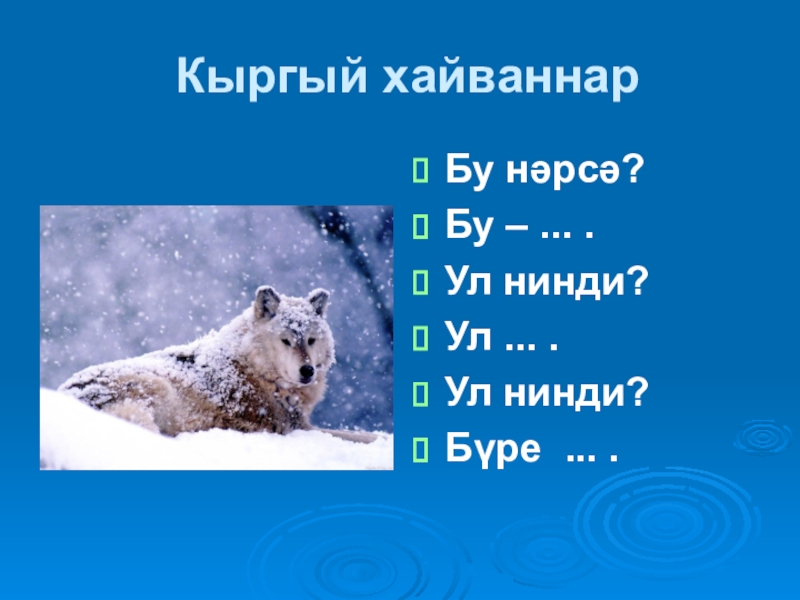 Кыргый хайваннарБу нәрсә?Бу – ... .Ул нинди?Ул ... .Ул нинди?Бүре ... .