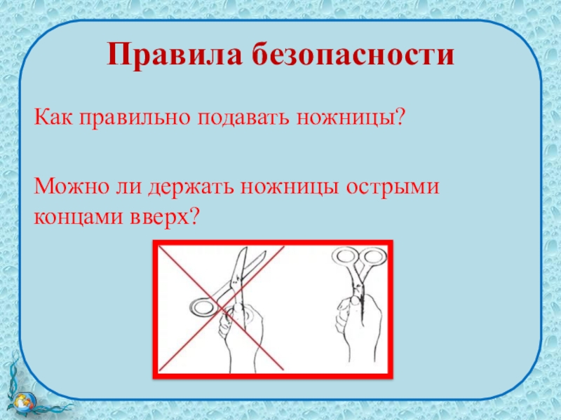 Правила безопасностиКак правильно подавать ножницы?Можно ли держать ножницы острыми концами вверх?