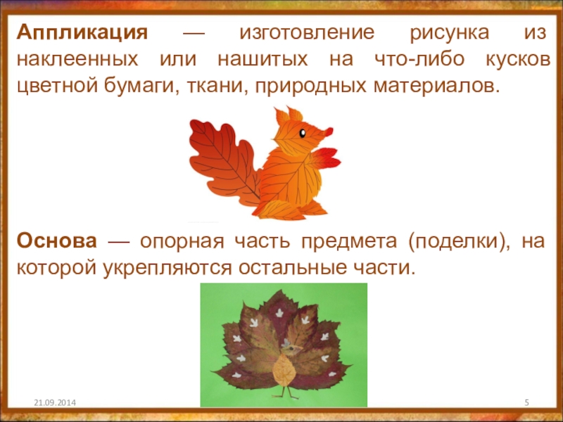 Основа — опорная часть предмета (поделки), на которой укрепляются остальные части.