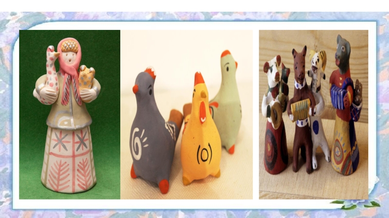 игрушки Галины Арефьевой. Она посвятила свою жизнь изучению традиций Воронежского края, в частности, изготовления глиняных игрушек. В результате проведенной большой исследовательской работы, привнеся в традиционные принципы создания народной игрушки свое авторское видение, мастерица сумела создать новую звонкую игрушку. Основала свою школу искусства изготовления игрушки, у нее немало увлеченных последователей.
