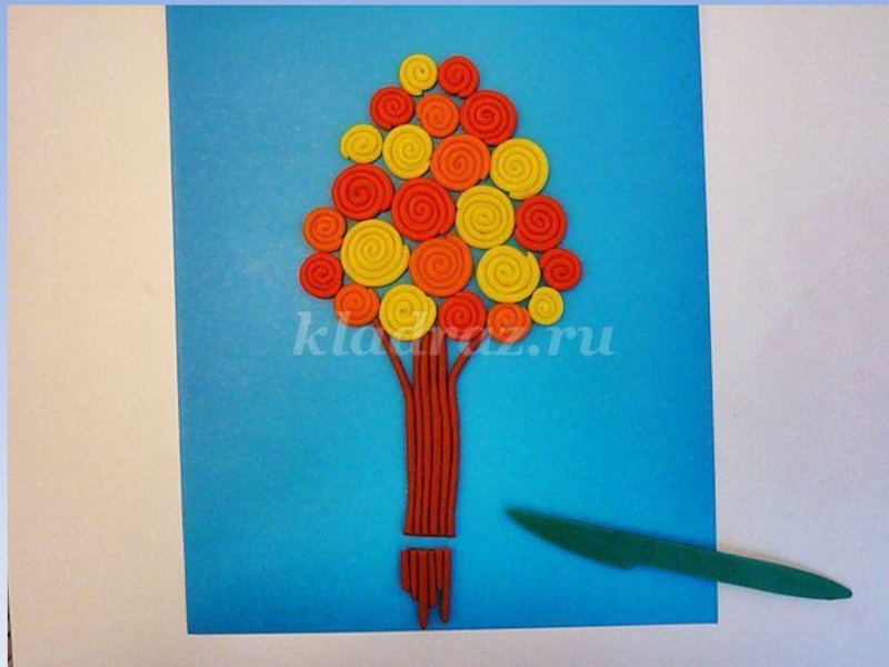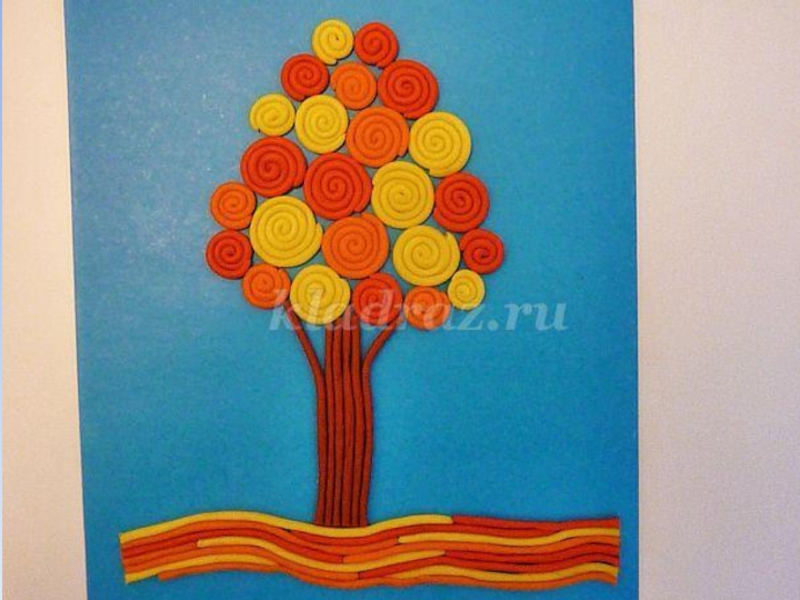 Презентация, доклад к уроку технологии. Аппликация из пластилина. Осеннее дерево.