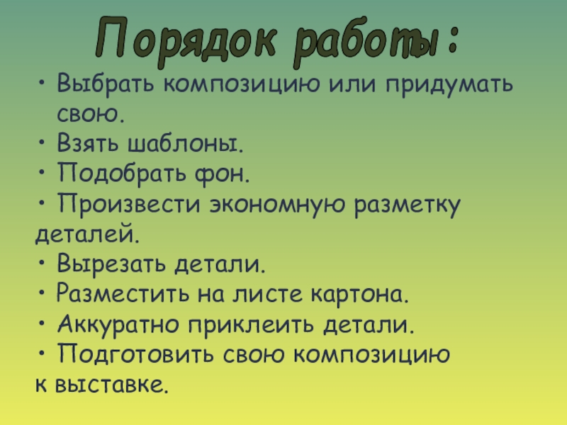 Порядок работы: