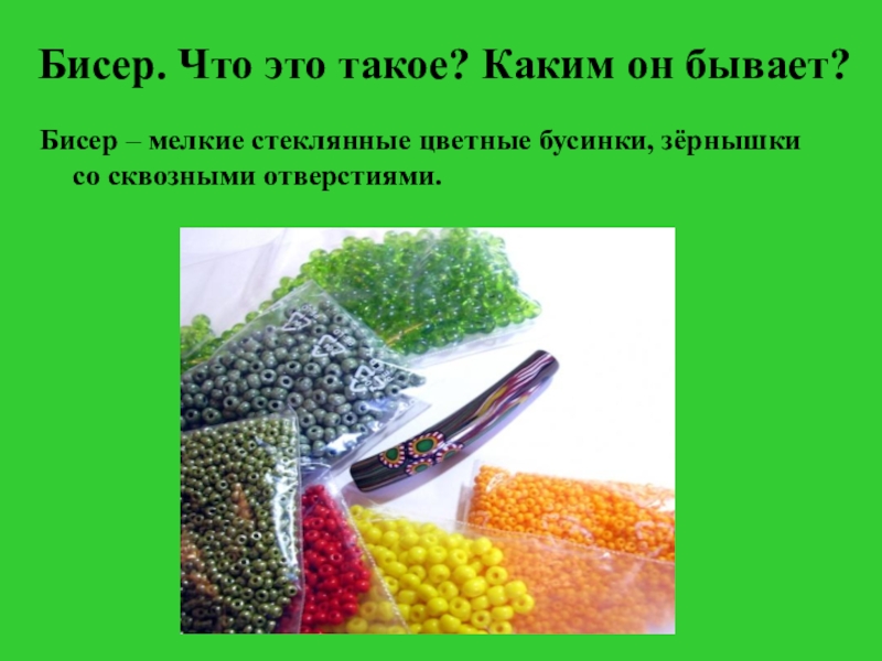 Слайд 6Бисер. Что это такое? Каким он бывает?