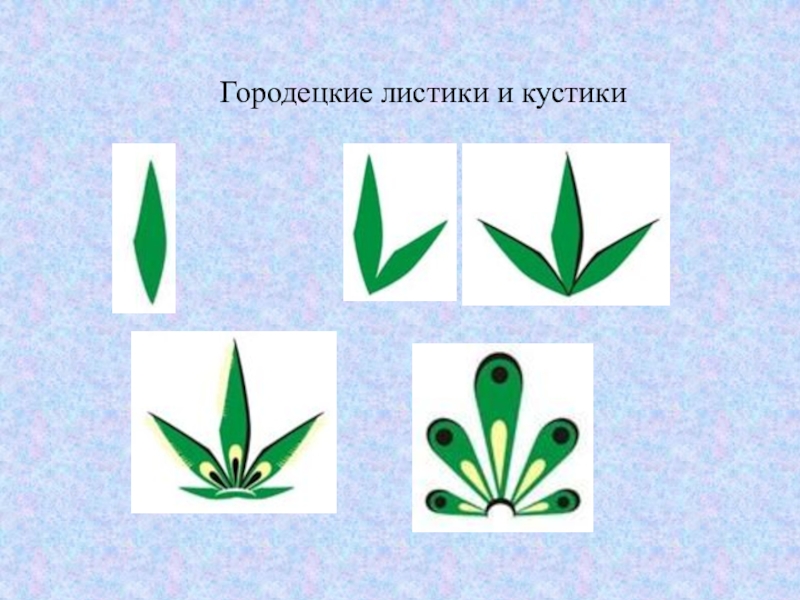 Слайд 22Городецкие листики и кустики