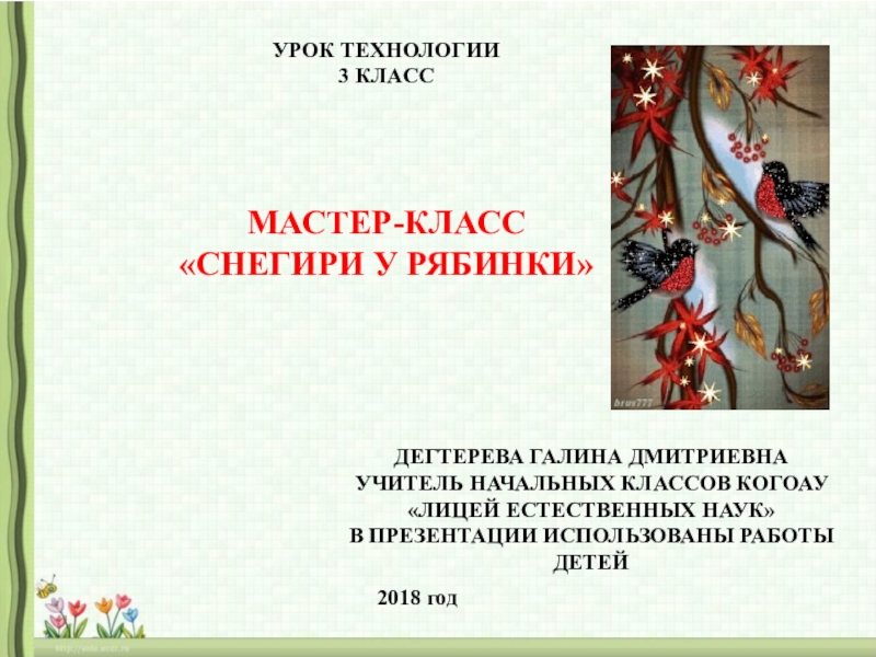 МАСТЕР-КЛАСС «СНЕГИРИ У РЯБИНКИ»