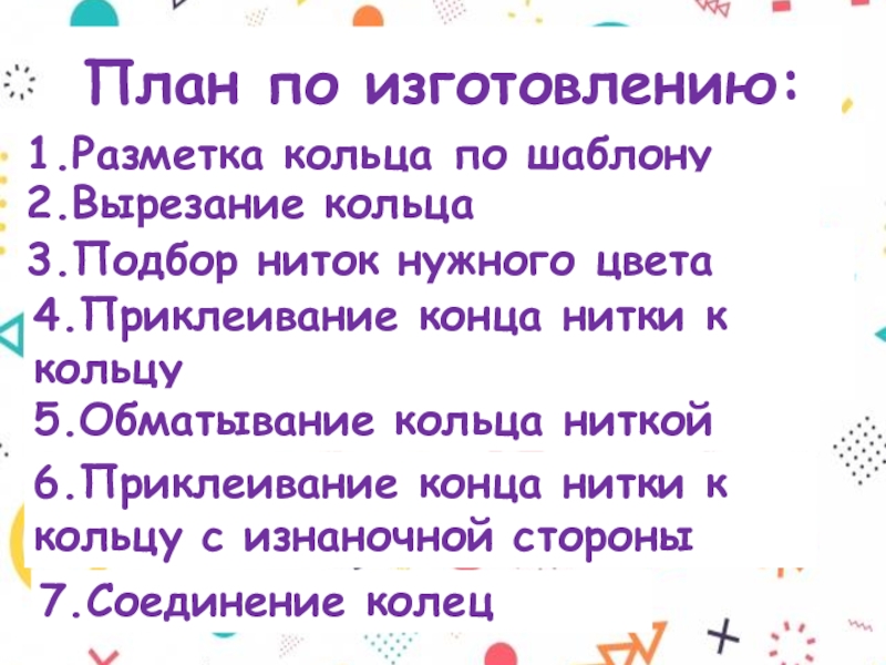 6.Приклеивание конца нитки к кольцу с изнаночной стороны