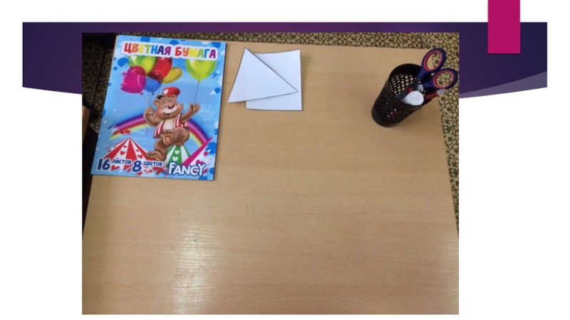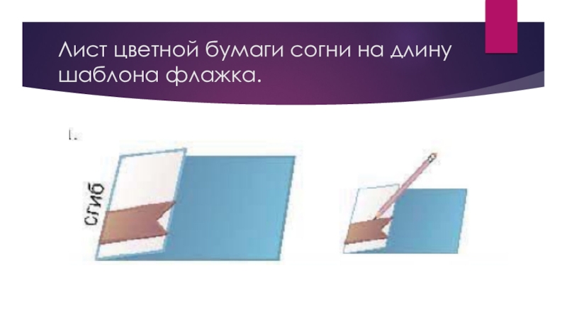 Слайд 3Лист цветной бумаги согни на длину шаблона флажка.