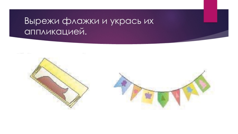 Слайд 5Вырежи флажки и укрась их аппликацией.
