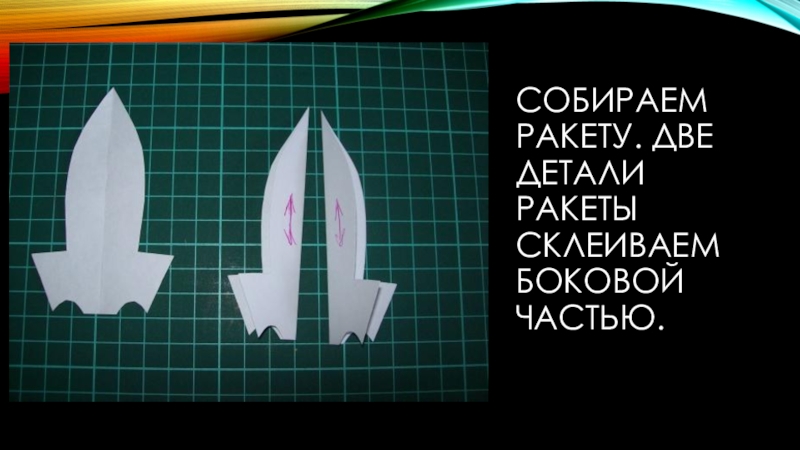 Слайд 6Собираем ракету. Две детали ракеты склеиваем боковой частью.