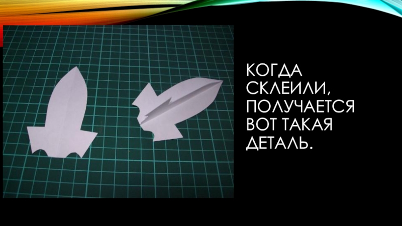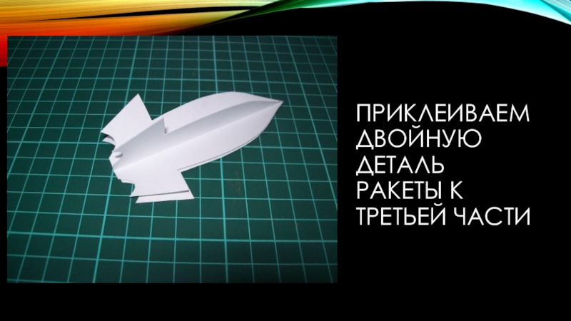 Слайд 9Приклеиваем двойную деталь ракеты к третьей части