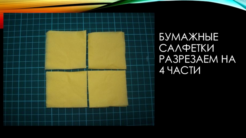 Слайд 15Бумажные салфетки разрезаем на 4 части