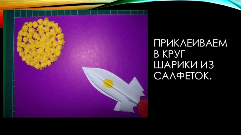 Слайд 18Приклеиваем в круг шарики из салфеток.