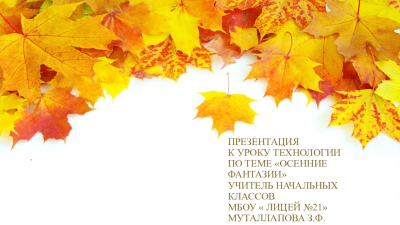 ПРЕЗЕНТАЦИЯ К УРОКУ ТЕХНОЛОГИИ ПО ТЕМЕ «ОСЕННИЕ ФАНТАЗИИ» УЧИТЕЛЬ НАЧАЛЬНЫХ КЛАССОВ МБОУ « ЛИЦЕЙ №21» МУТАЛЛАПОВА З.Ф..