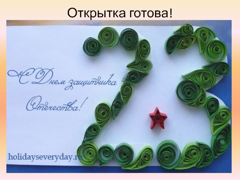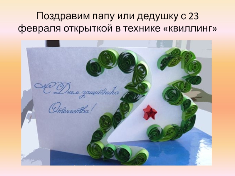 Слайд 2Поздравим папу или дедушку с 23 февраля открыткой в технике «квиллинг»