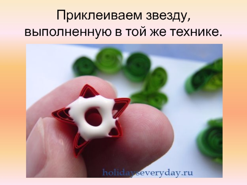 Слайд 7Приклеиваем звезду, выполненную в той же технике.