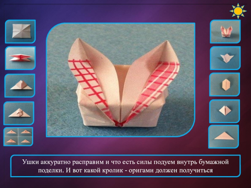 Ушки аккуратно расправим и что есть силы подуем внутрь бумажной поделки. И вот какой кролик - оригами