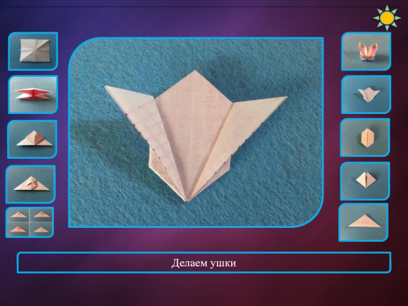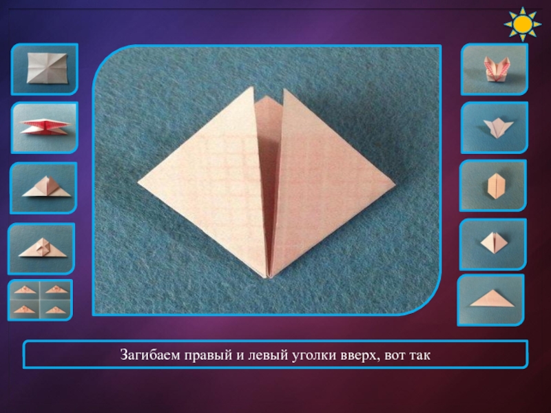 Слайд 10Загибаем правый и левый уголки вверх, вот так