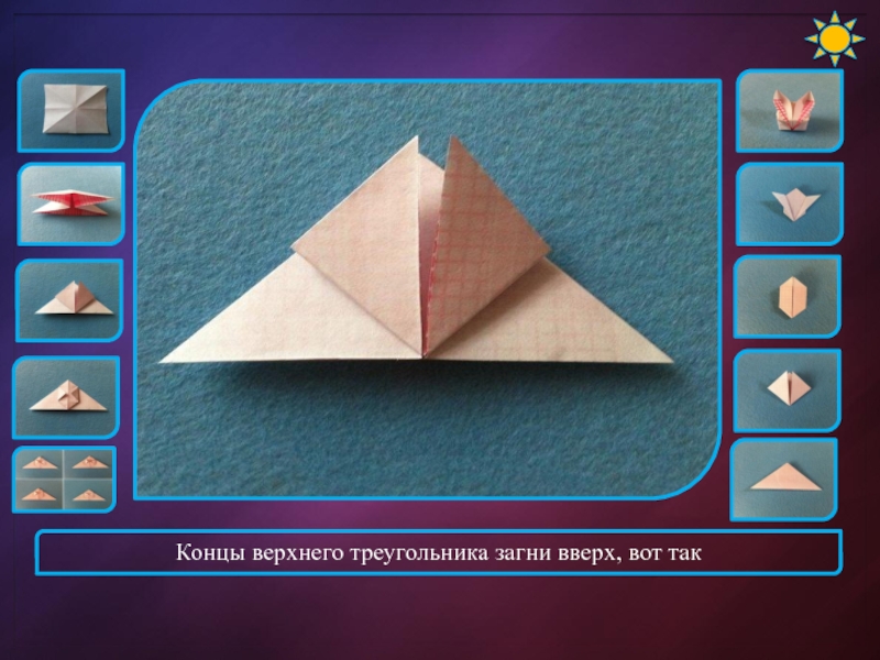 Слайд 6Концы верхнего треугольника загни вверх, вот так